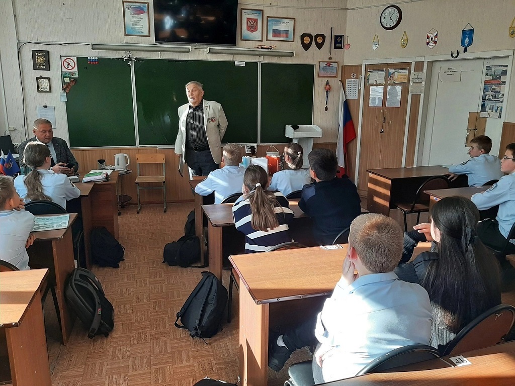 С кадетами ВПО "Кречет" МБОУ "СШ № 2" Иваново встретился заслуженный работник культуры РФ, член союза журналистов России, член союза писателей России, краевед Антонов Игорь Павлович. Гость рассказал ребятам о нашем героическом земляке.