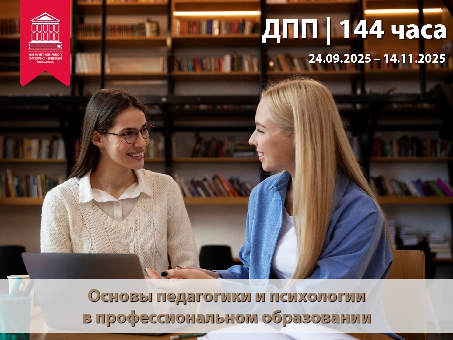 Университет непрерывного образования и инноваций приглашает педагогических работников профессиональных образовательных организаций (СПО), не имеющих педагогическое образование на дополнительную профессиональную программу повышения квалификации «Основы педагогики и психологии в профессиональном образовании» в объеме 144 часов.