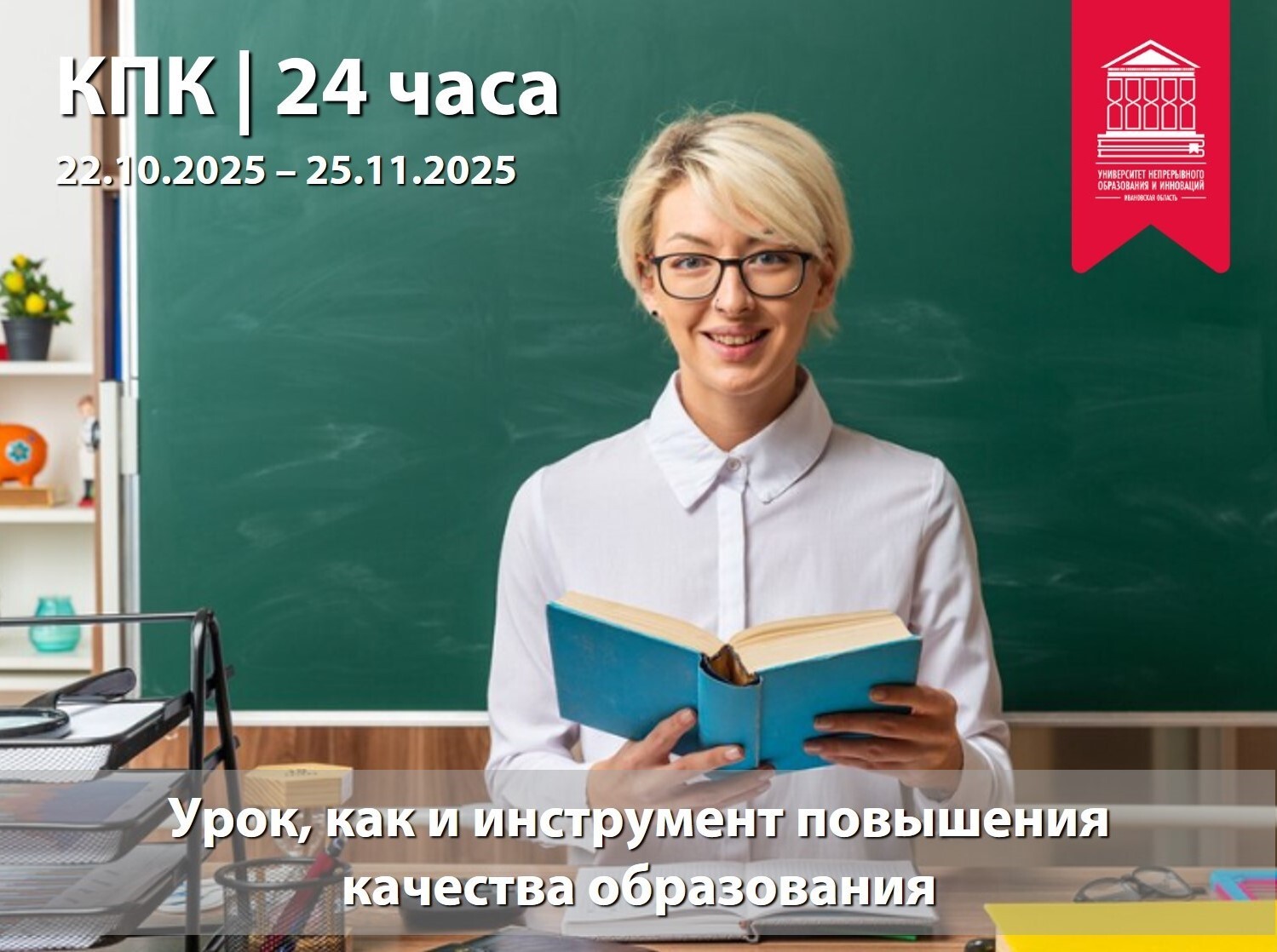 Университет непрерывного образования и инноваций приглашает заместителей директора, по учебной работе, учителей начальных классов, учителей-предметников на дополнительную профессиональную программу повышения квалификации «Урок, как и инструмент повышения качества образования» в объеме 24 часов.