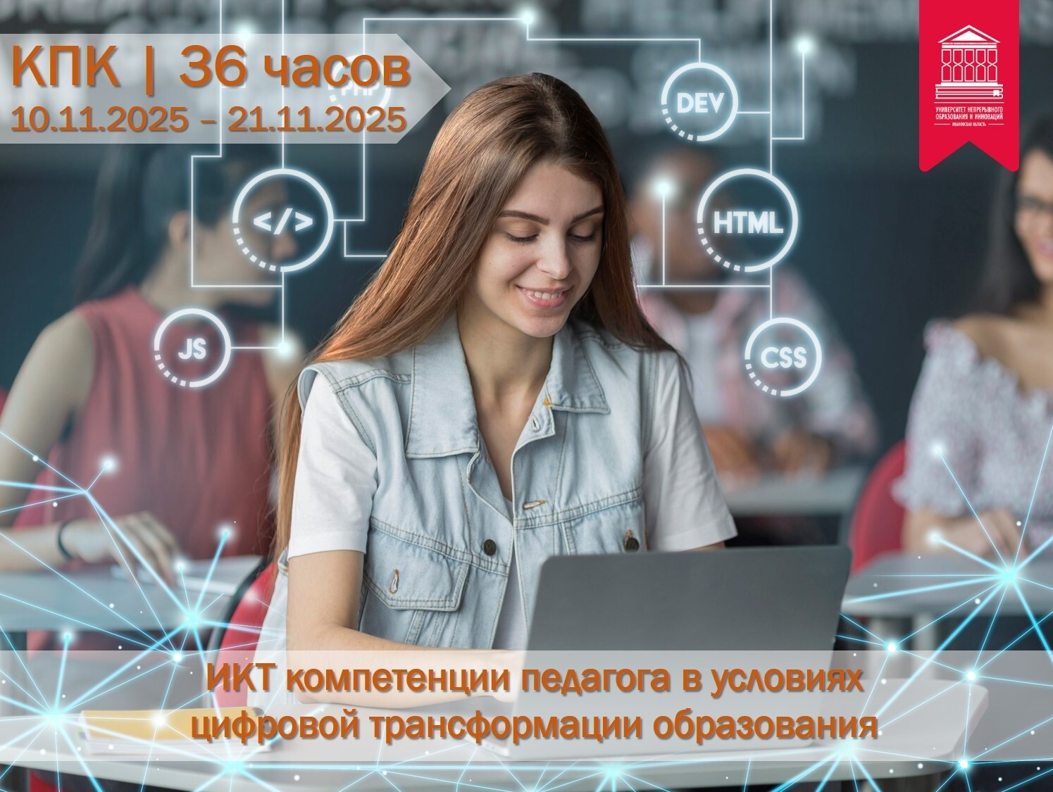 Университет непрерывного образования и инноваций приглашает учителей и педагогов образовательных организаций на дополнительную профессиональную программу повышения квалификации «ИКТ компетенции педагога в условиях цифровой трансформации образования» в объеме 36 часов.