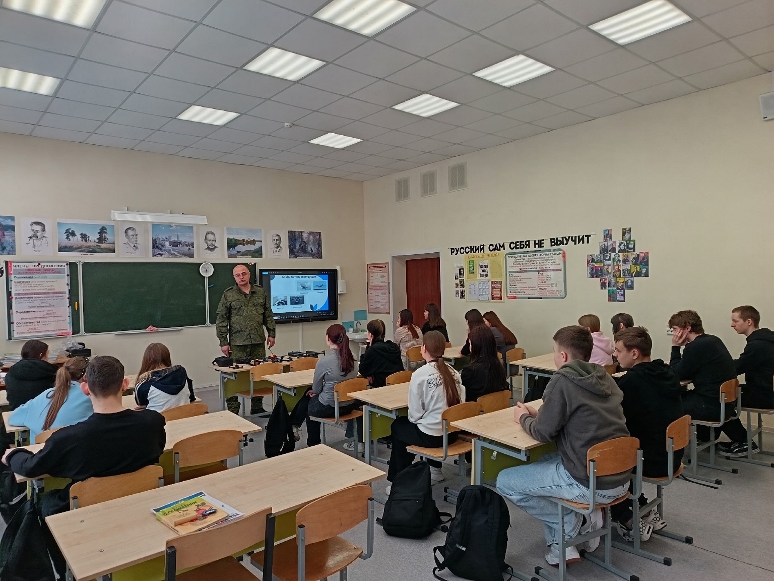 Станислав Макутин, руководитель регионального центра военно-патриотического воспитания, провёл демонстрацию возможностей управления беспилотным летательным аппаратом (БПЛА). Учащиеся получили возможность практического освоения данного направления.