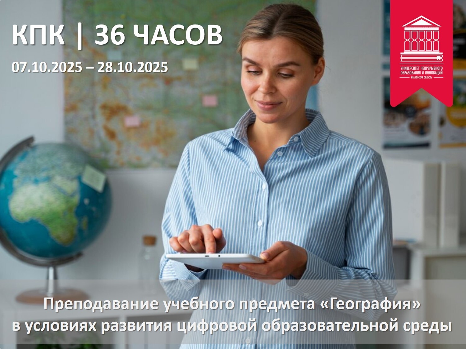 Университет непрерывного образования и инноваций приглашает учителей географии на дополнительную профессиональную программу повышения квалификации «Преподавание учебного предмета «География» в условиях развития цифровой образовательной среды» в объеме 36 часов.