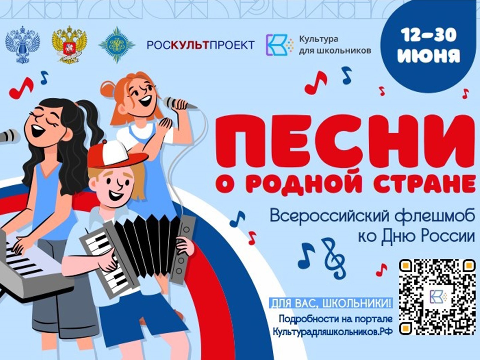 С 12 по 30 июня 2024 года состоится Всероссийский флешмоб «Песни о родной стране». Целью этого мероприятия является воспитание патриотизма среди молодежи.