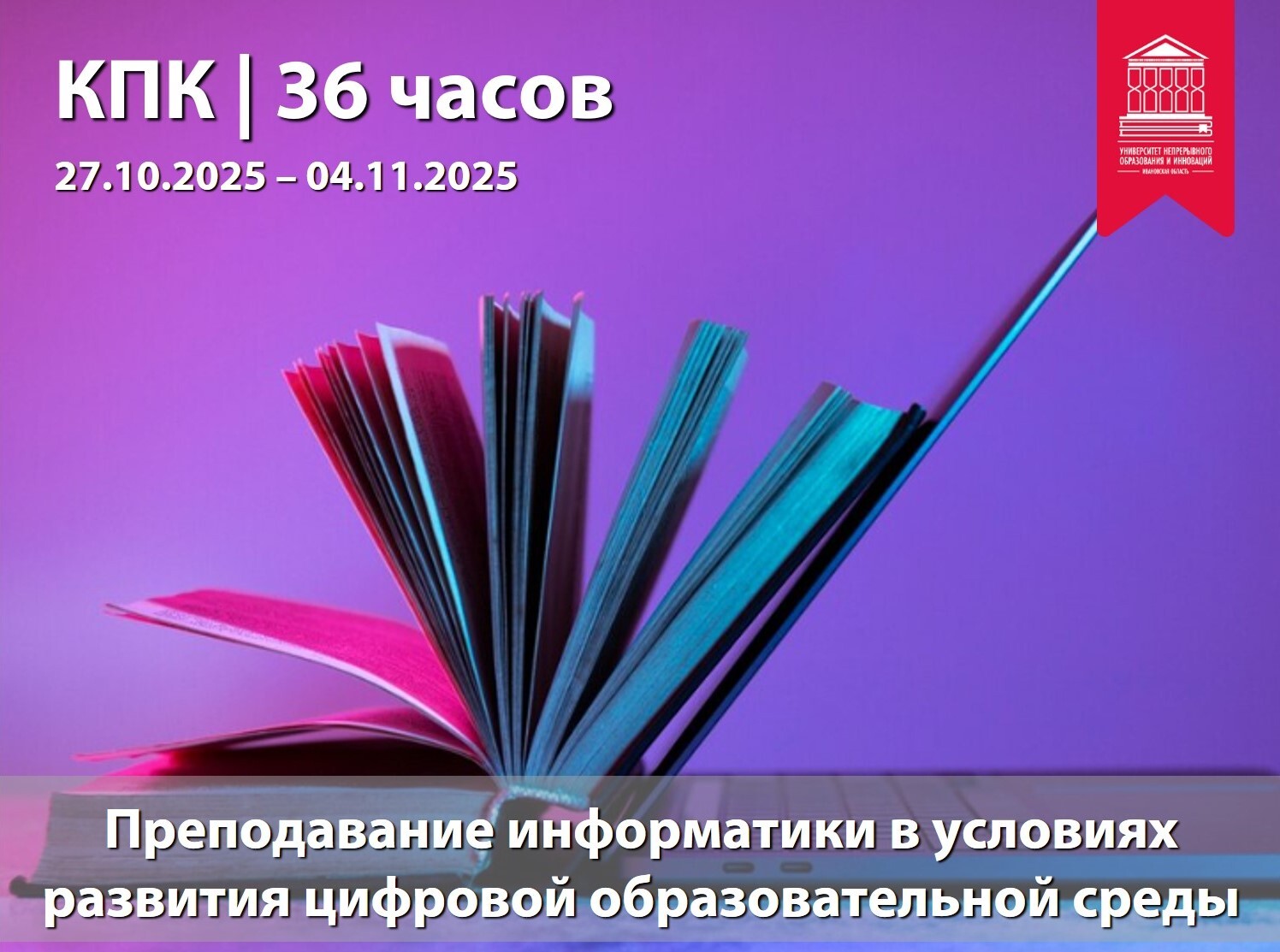 Университет непрерывного образования и инноваций приглашает учителей, преподавателей информатики на дополнительную профессиональную программу повышения квалификации «Преподавание информатики в условиях развития цифровой образовательной среды» в объеме 36 часов.