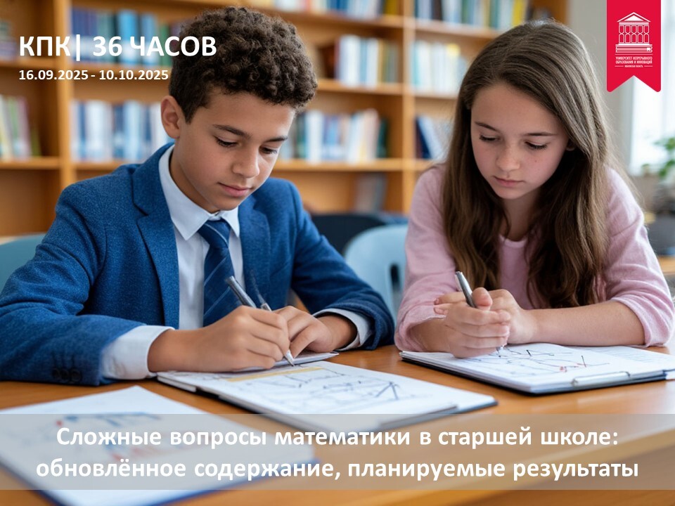 Университет непрерывного образования и инноваций приглашает учителей, преподавателей математики на курсы повышения квалификации по дополнительной профессиональной программе «Сложные вопросы математики в старшей школе: обновлённое содержание, планируемые результаты» в объеме 36 часов.